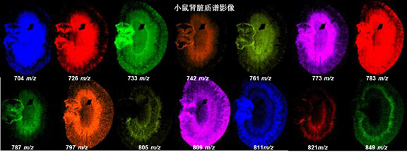 在MALDI-TOF技術(shù)出現(xiàn)后,美國(guó)Vanderbilt University的Richard Caprioli意識(shí)到這一分子檢測(cè)技術(shù)具有二維掃描的特性,自90年代中期開(kāi)始了利用激光掃描結(jié)合質(zhì)譜分析的分子成像技術(shù),探索開(kāi)發(fā)一種新的方法來(lái)確定生物大分子在組織切片中的分布,特別是對(duì)傳統(tǒng)的免疫化學(xué)無(wú)法進(jìn)行分析的樣本。他們使用的方法是用基質(zhì)液滴噴灑冷凍組織切片,并用配備有精細(xì)激光焦點(diǎn)的MALDI-TOF儀器對(duì)組織樣品進(jìn)行掃描。這項(xiàng)技術(shù),不光可以獲取樣品中的分子信息,同時(shí)可以在無(wú)化學(xué)標(biāo)記的狀態(tài)下獲得生物分子在復(fù)雜表面的空間分布。這一結(jié)合為生物組織學(xué)研究人員提供了可以用于組織表面的直接生物分子表征的化學(xué)“顯微鏡”。