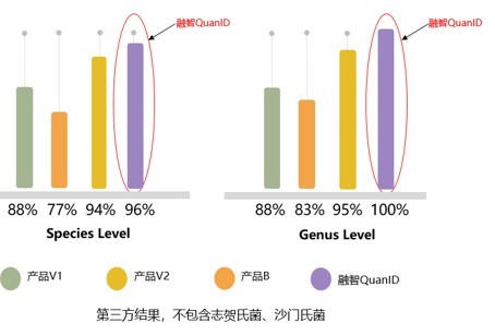 在微生物鑒定方面,第三方的驗證結果表明,QuanID微生物質(zhì)譜在種水平和屬水平鑒定準確率上均優(yōu)于國際同類產(chǎn)品。