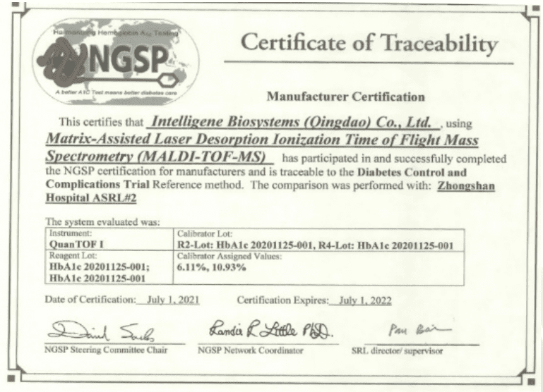 全球首個(gè)獲得國(guó)際權(quán)威機(jī)構(gòu) NGSP 認(rèn)證的飛行時(shí)間質(zhì)譜方法